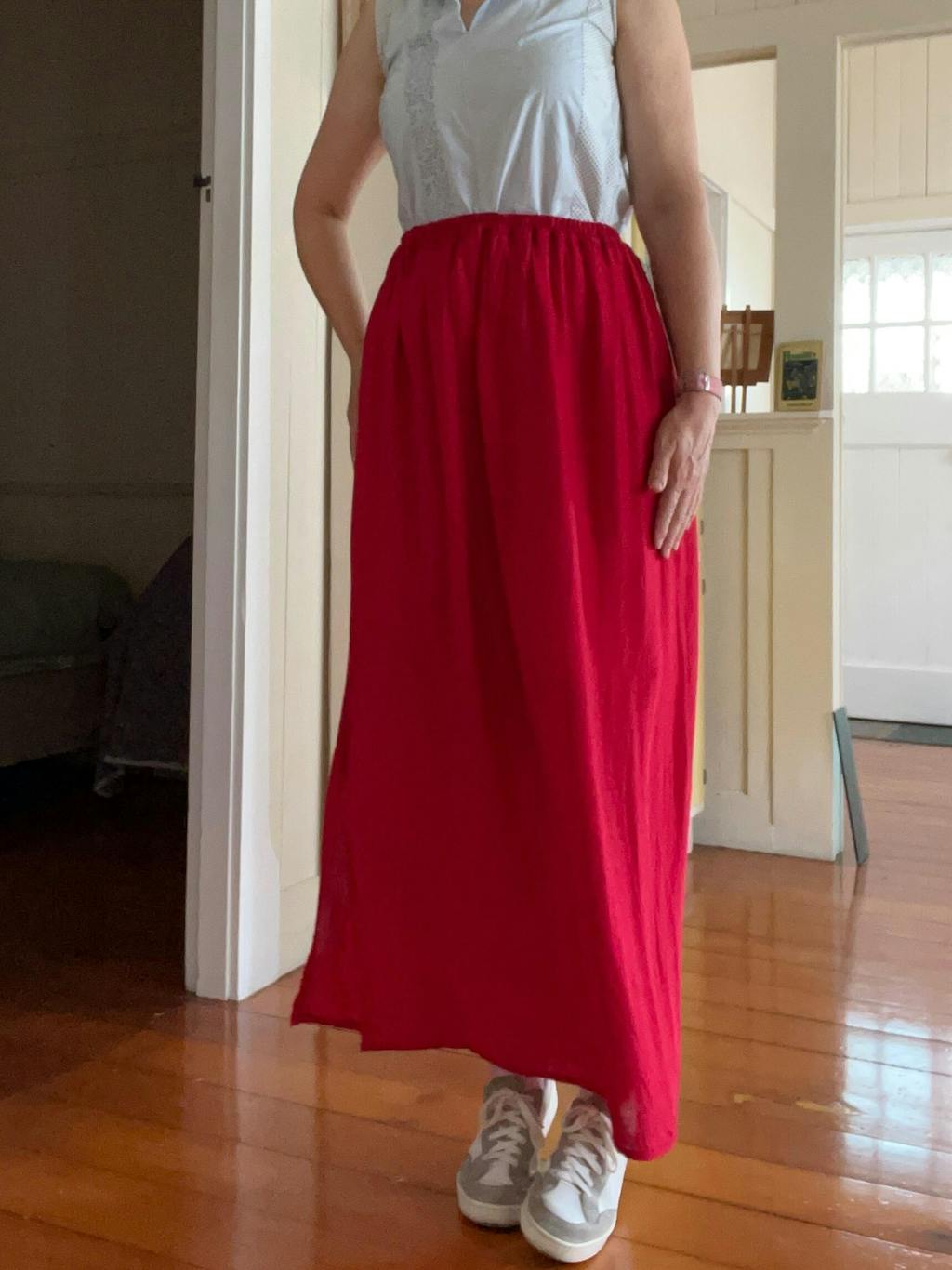 Simple to wear and make, with band of elastic. Very drapery and comfortable