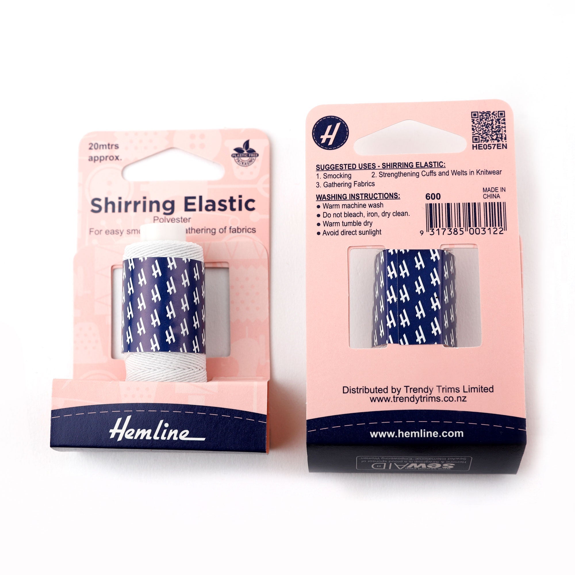 A single 20m spool of shirring elastic in white. A 0.75mm elastic suitable for gathering, smocking and elasticated panels.