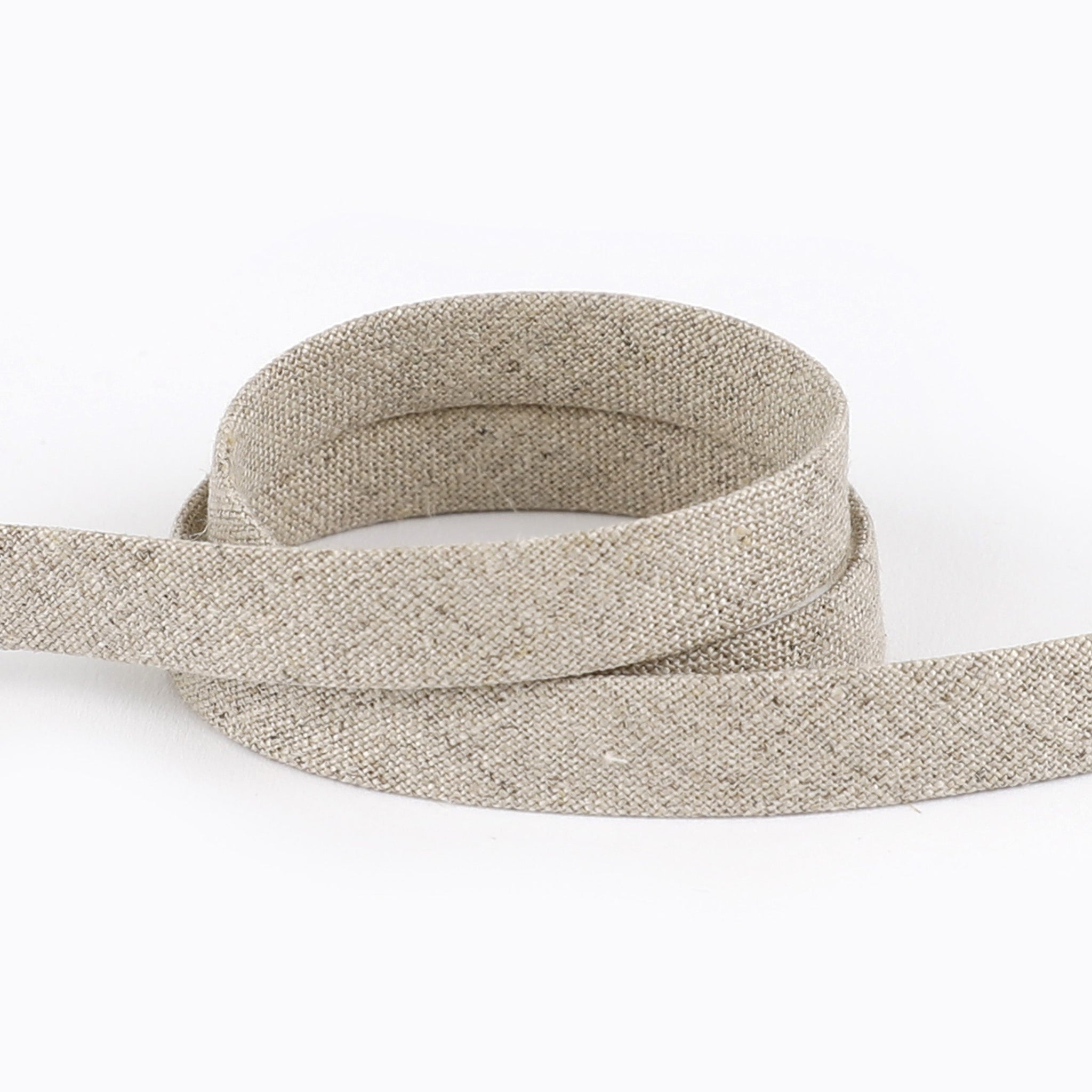 Organic Hemp bias binding made using our exclusive range in Rye. Our bias binding is a double-fold tape with a finished measurement of 1cm, making it super straightforward to attach. Use as contrasting feature on necklines, ruffle edges and pockets or have as a special hidden detail on inside seams and a for bias faced hems, creating a unique finish to your garments.