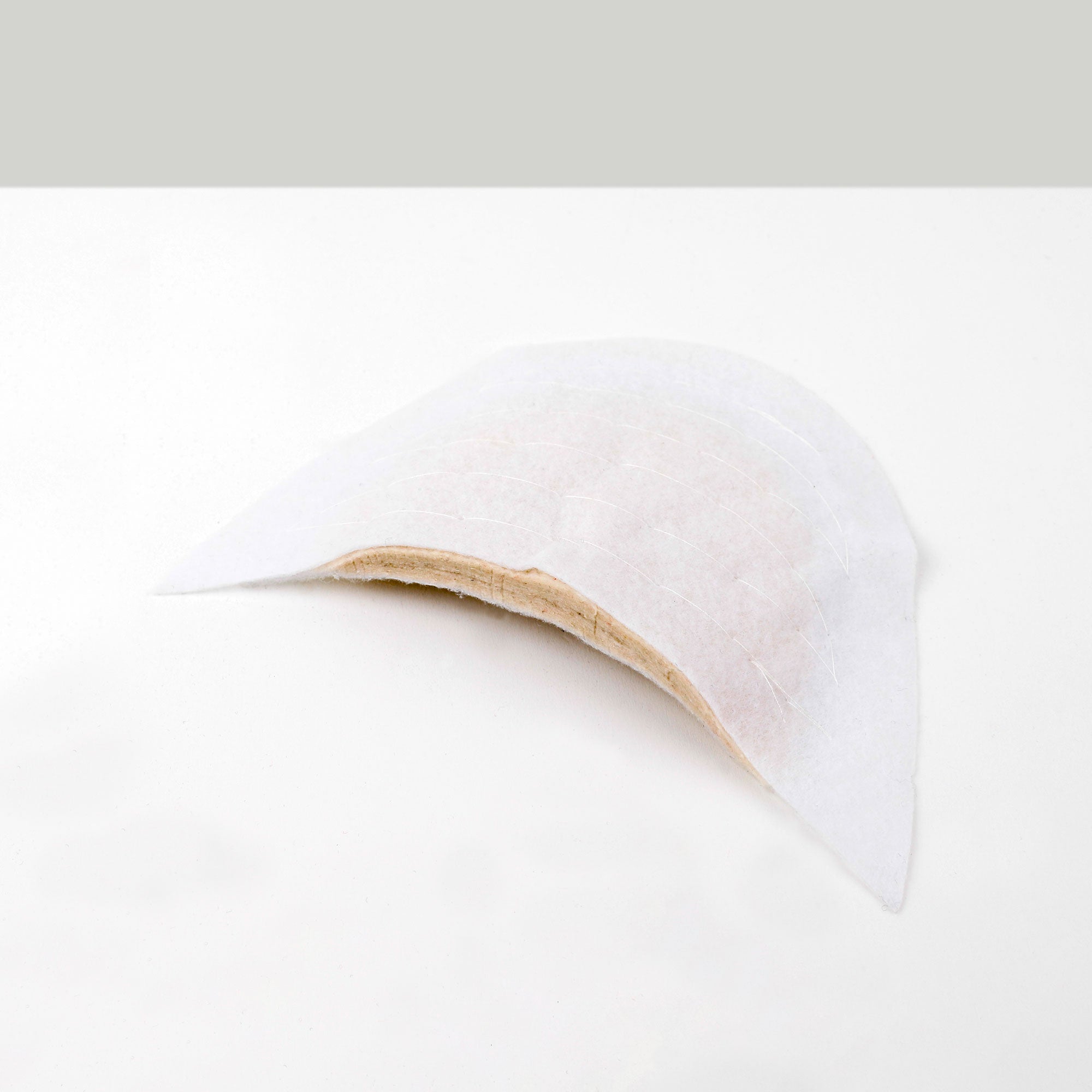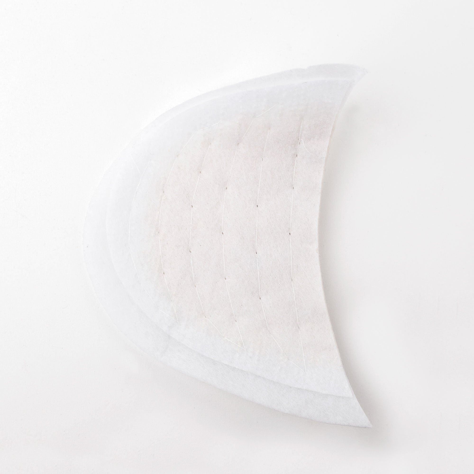 A pair of classic white shoulder pads. Set in, standard shape with an average thickness of needled cotton wadding. Stitched top & bottom cover, with curved armhole edge. Suitable for fitted styles such as jackets and coats.