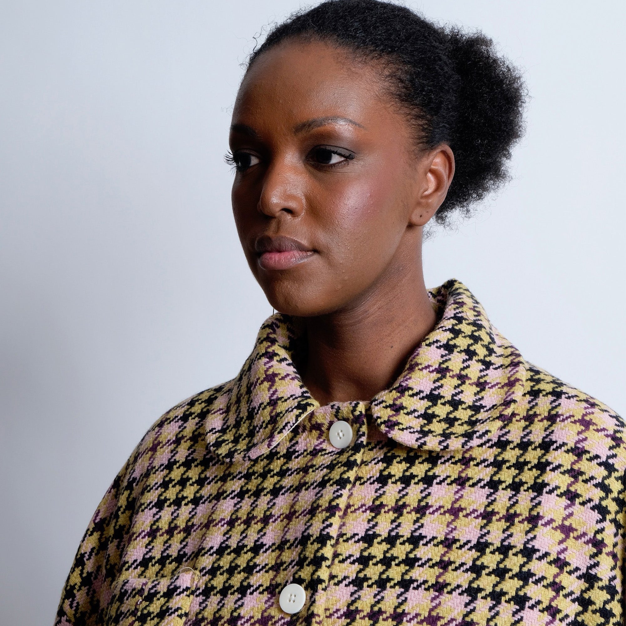The ZW Bell Jacket is an oversized jacket with a rounded collar, front button closure, 3 front patch pockets, an inverted box pleat at the centre back neck, and wide sleeves that are perfect for fitting all of your winter layers underneath. The Bell jacket gets it’s name from the bell shaped sleeve, created with several darts sewn into the hem of the sleeve. This jacket is fully lined.