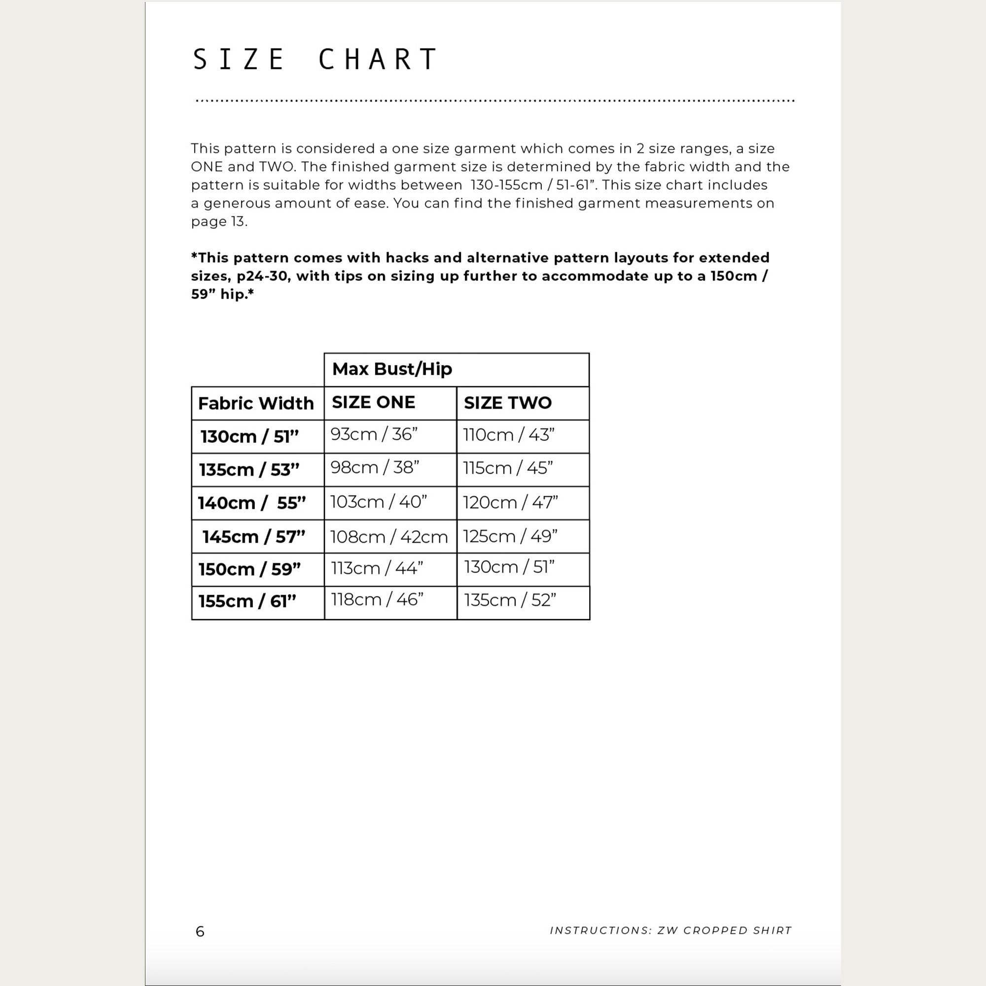 This is a 'one size' pattern which comes in two size ranges. The pattern includes instructions for all sizes - size ONE (EU 36 - 44) and size TWO (EU 46 - 52). Swipe through the photos for measurement details.