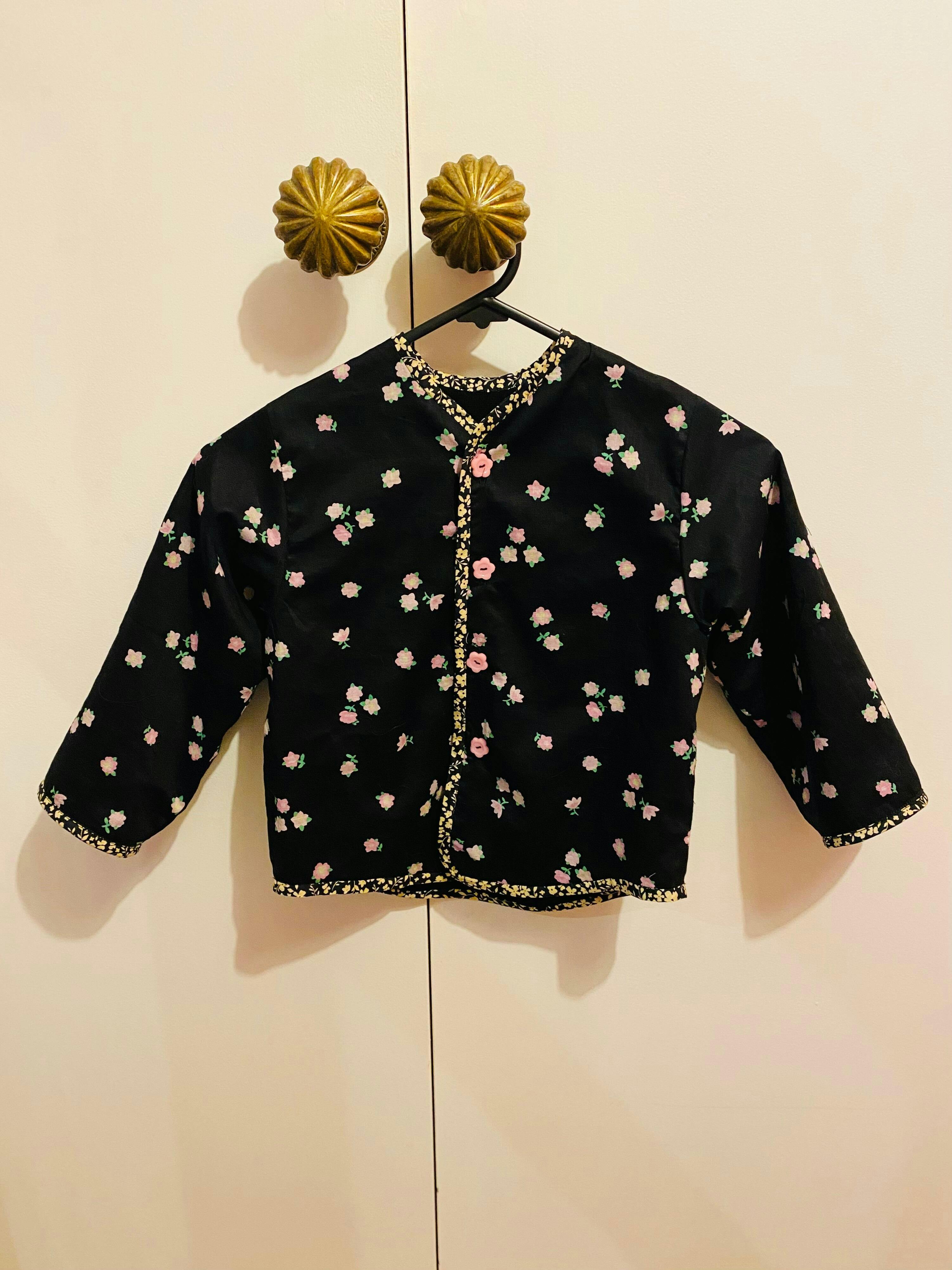 Cotton print outer, merino lining with cotton binding. Such a cute print!!