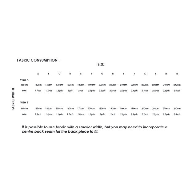 This bias cut slip dress comes with multiple neckline, back and length options that can be mixed and matched to create your own style. View A has a a deep V front, with a gathered bust, V cut back and finishes at the calf. View B is a mini dress with a subtly shaped V neck with a gathered bust. Buttons and button loops at the centre front neckline give more coverage. The back features