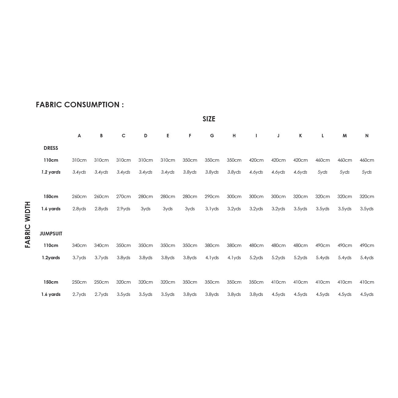 K: 110cm (43in) L: 115cm (45in) M: 120cm (47in) N: 125cm (49in)
