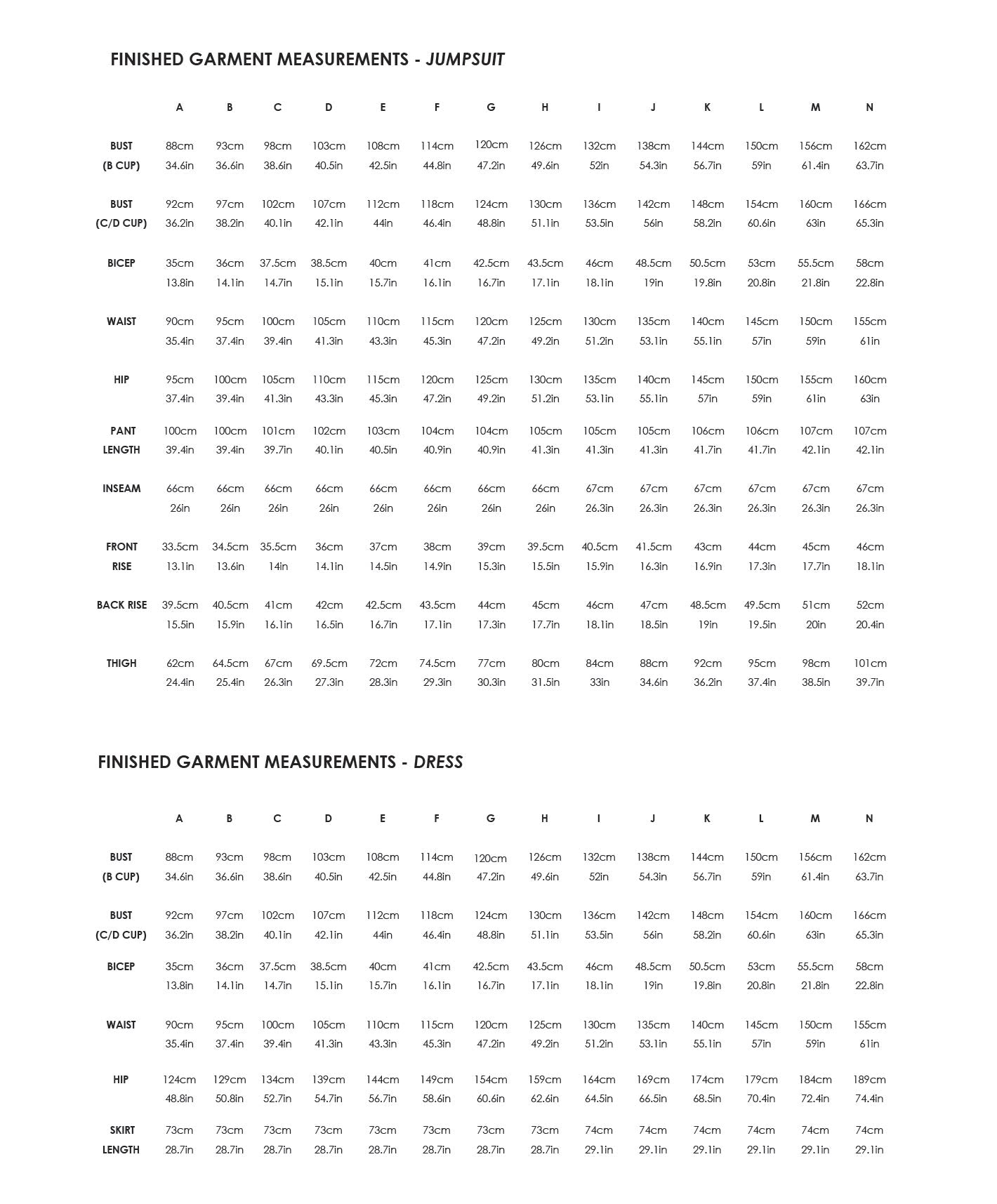 F: 85cm (33in) G: 90cm (35in) H: 95cm (37in) I: 100cm (39in) J: 105cm (41in)