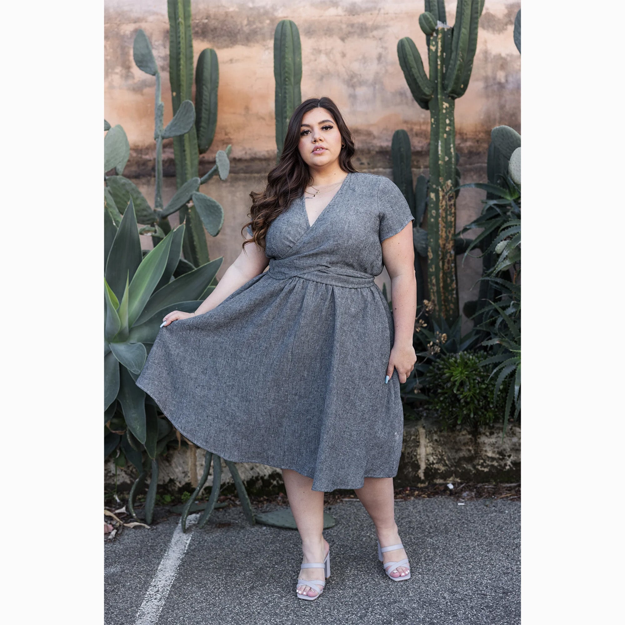Medium weight woven fabrics with good drape. Tencel, rayon, washed linen, silk noil, soft cottons etc. Please note: If you’re using a patterned fabric with a repeat that you’d like to match, you may need more fabric than what is suggested above. Use your discretion.