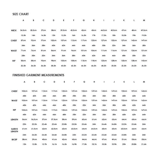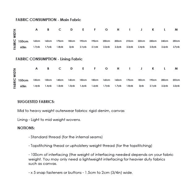 This pattern has been drafted for a height of 5'10. It’s recommended to make a toile first in an inexpensive fabric to work out any fitting alterations you may need, before cutting into your chosen fabric. Finished Garment Measurement: See chart in images