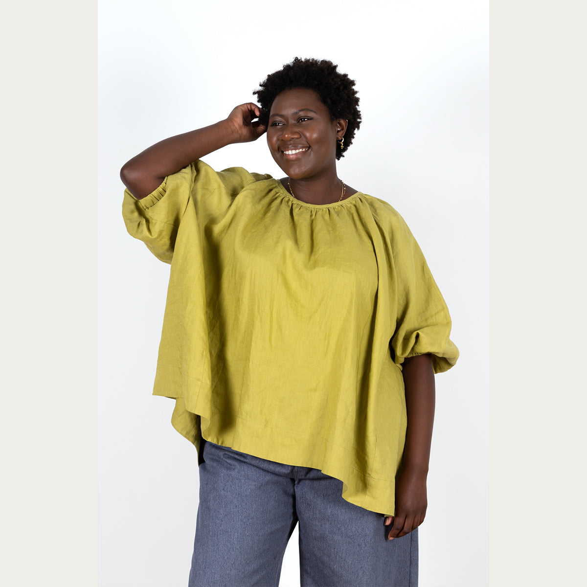 // Inspired by all things painterly, the Paint Dress + Top is a year-round sculptural statement! Paint showcases a playful voluminous silhouette and raglan sleeve, gathered at the neckline and cuff. Options are available for a cuffed full length sleeve, or an elasticated short sleeve which is designed to sit at the bicep. The pattern can be cut as a dress, finishing at mid-calf, or as a top, finishing at low hip. Paint features simple construction, a bound neckline with centre-back closure, side seam pockets and a deep turned back hem to complete the look. Paint’s generous blousy fit is a dream for pairing with sandals on hot summer days, and layering up with merino and leggings for cooler months. #TFSPaint