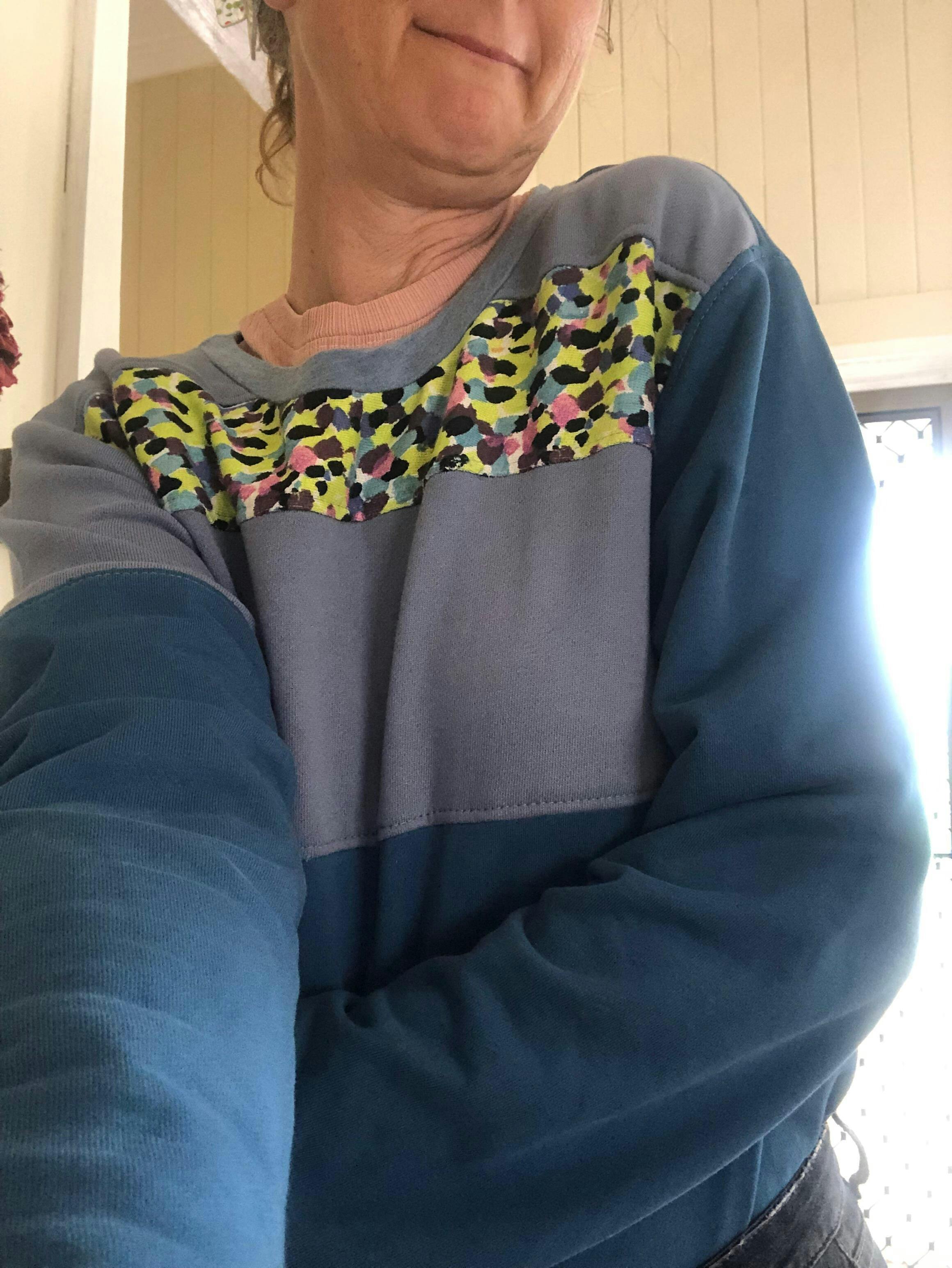 Using left over Liberty sweatshirt and pale blue sweatshirting loopback - a very comfy garment